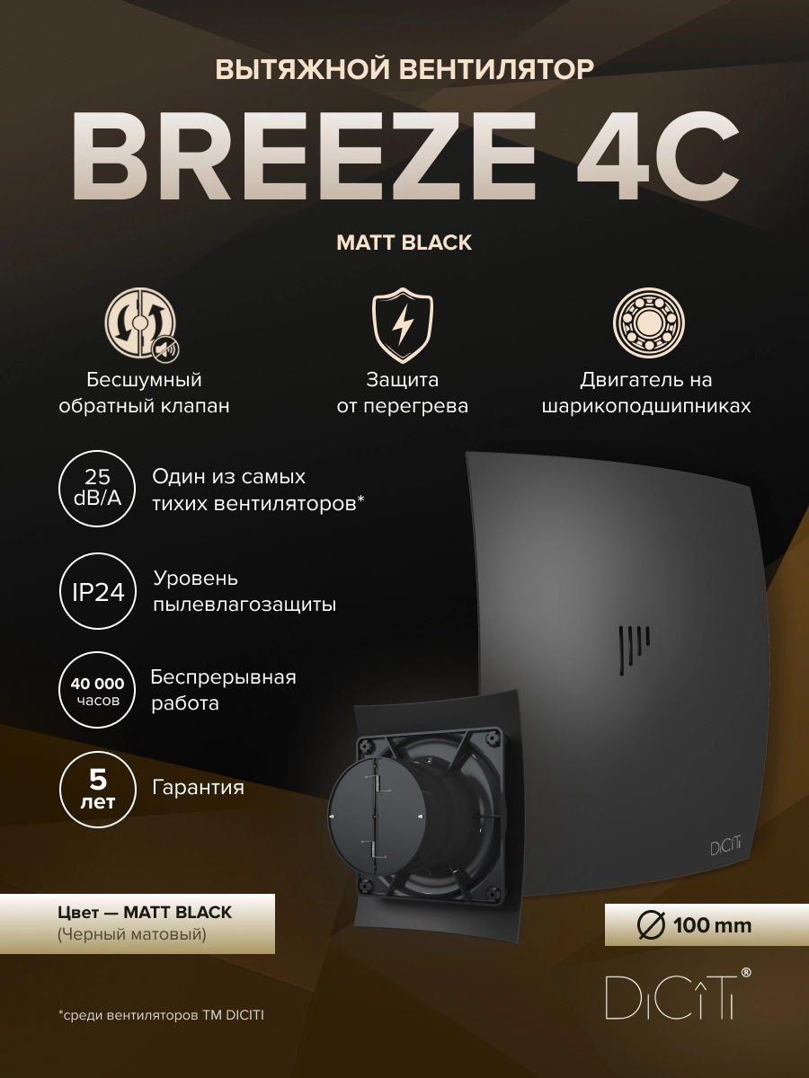 Долговечный двигатель на шарикоподшипниках не требует дополнительного обслуживания и гарантирует до 40 000 часов непрерывной работы, предохранитель Termo fuse отключит вентилятор при нагреве обмотки свыше +130 °C. BREEZE можно установить как в стену, так и в потолок.