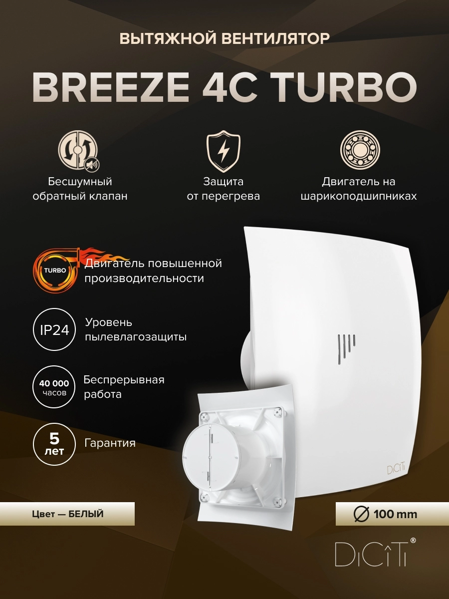 Долговечный двигатель на шарикоподшипниках не требует дополнительного обслуживания и гарантирует до 40 000 часов непрерывной работы, предохранитель Termo fuse отключит вентилятор при нагреве обмотки свыше +130 °C. BREEZE можно установить как в стену, так и в потолок.