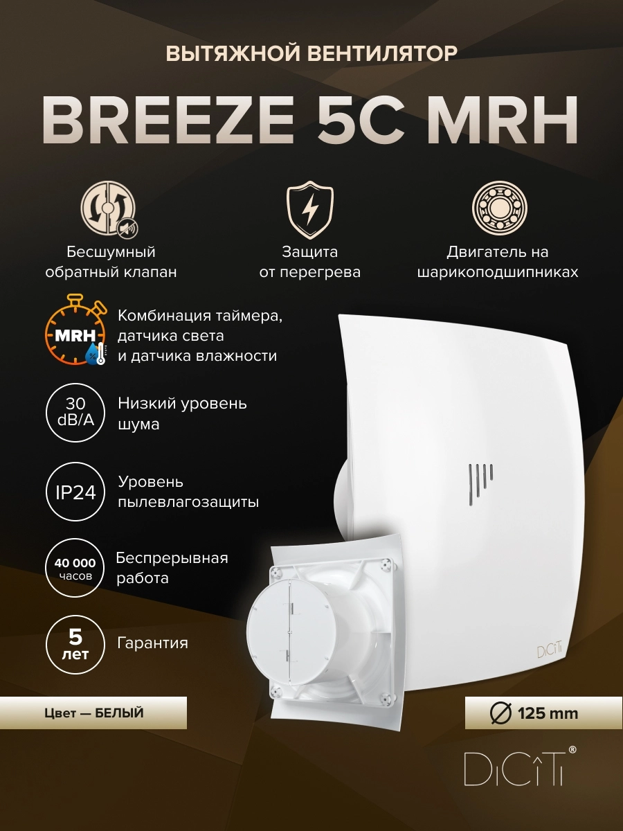 Долговечный двигатель на шарикоподшипниках не требует дополнительного обслуживания и гарантирует до 40 000 часов непрерывной работы, предохранитель Termo fuse отключит вентилятор при нагреве обмотки свыше +130 °C. BREEZE можно установить как в стену, так и в потолок.