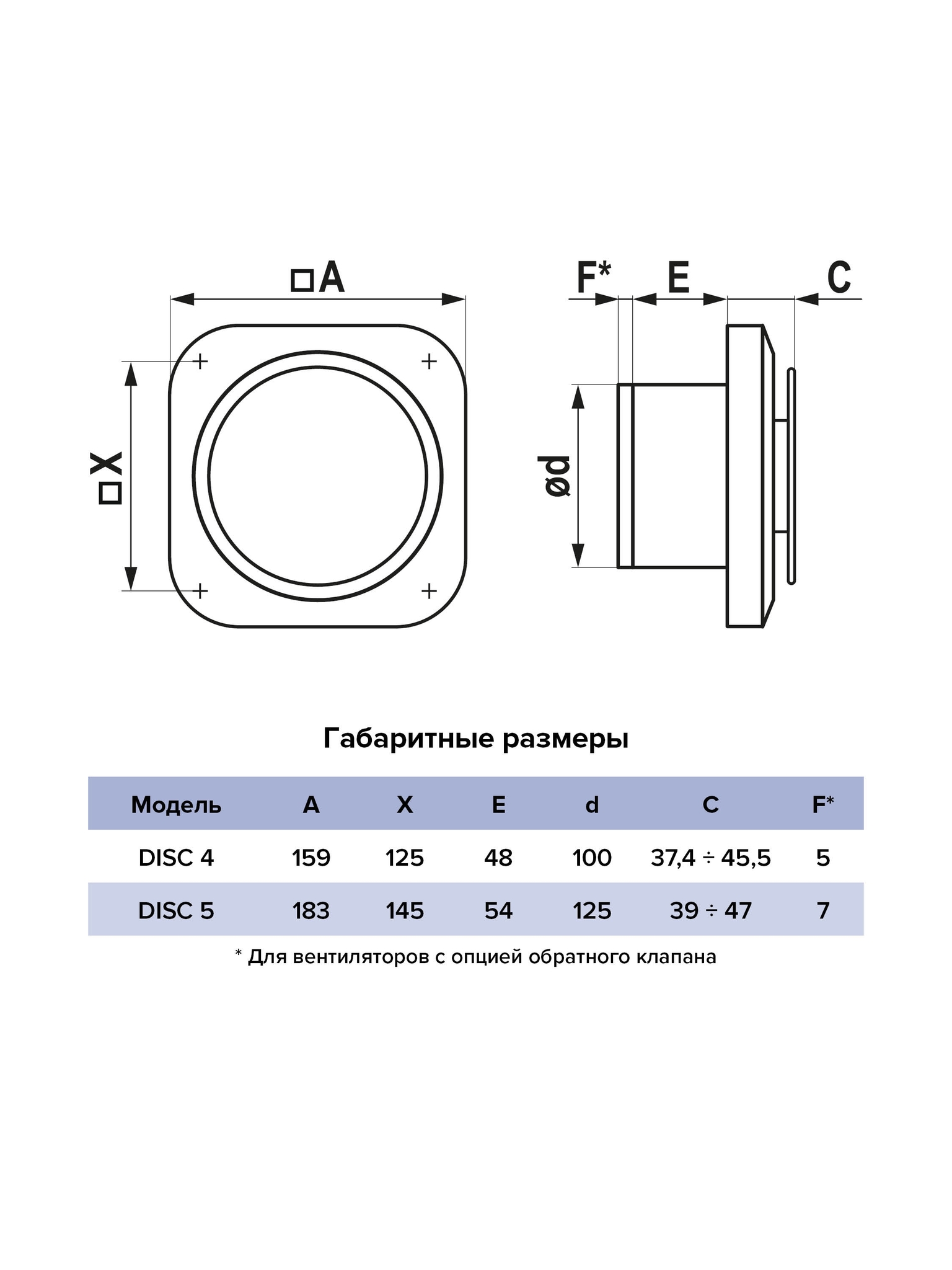 Укороченный фланец позволяет монтировать вентилятор, когда есть ограничения по глубине вентиляционной шахты, а также в потолок (c опцией BB).