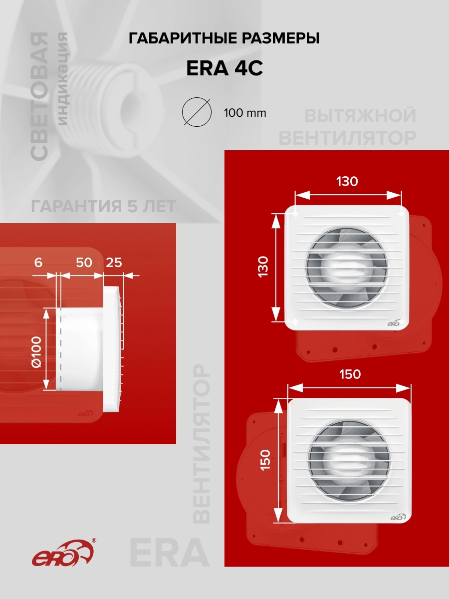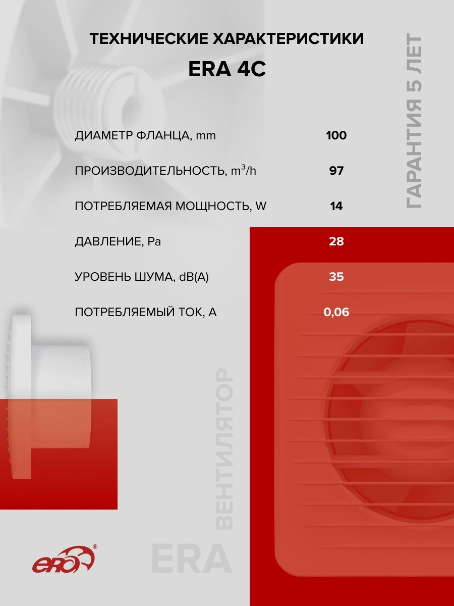 Вентилятор ERA 4С применяется для постоянной и периодической вентиляции санузлов, ванных комнат, кухонь и других бытовых помещений.