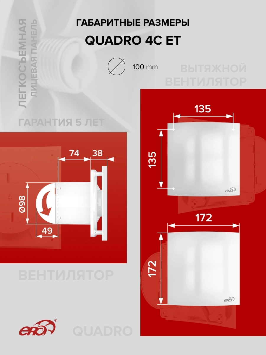 Благодаря специальной конструкции базы закрытая лицевая панель не мешает вытяжке воздуха из помещения, легко снимается, упрощая очистку вентилятора.