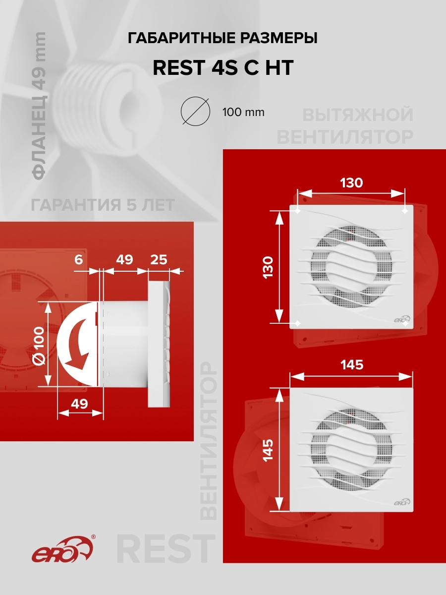 Высокое качество сборки обеспечивает надежное крепление крыльчатки. Короткий фланец (49 мм) существенно упрощает установку вентилятора в ограниченном пространстве.Лаконичный дизайн вентилятора с горизонтальными жалюзи идеально дополнит любой интерьер.