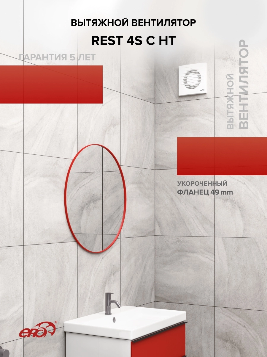 Благодаря высокой производительности (100 м³/ч) REST эффективно вытягивает из помещения влажный воздух и удаляет неприятные запахи.