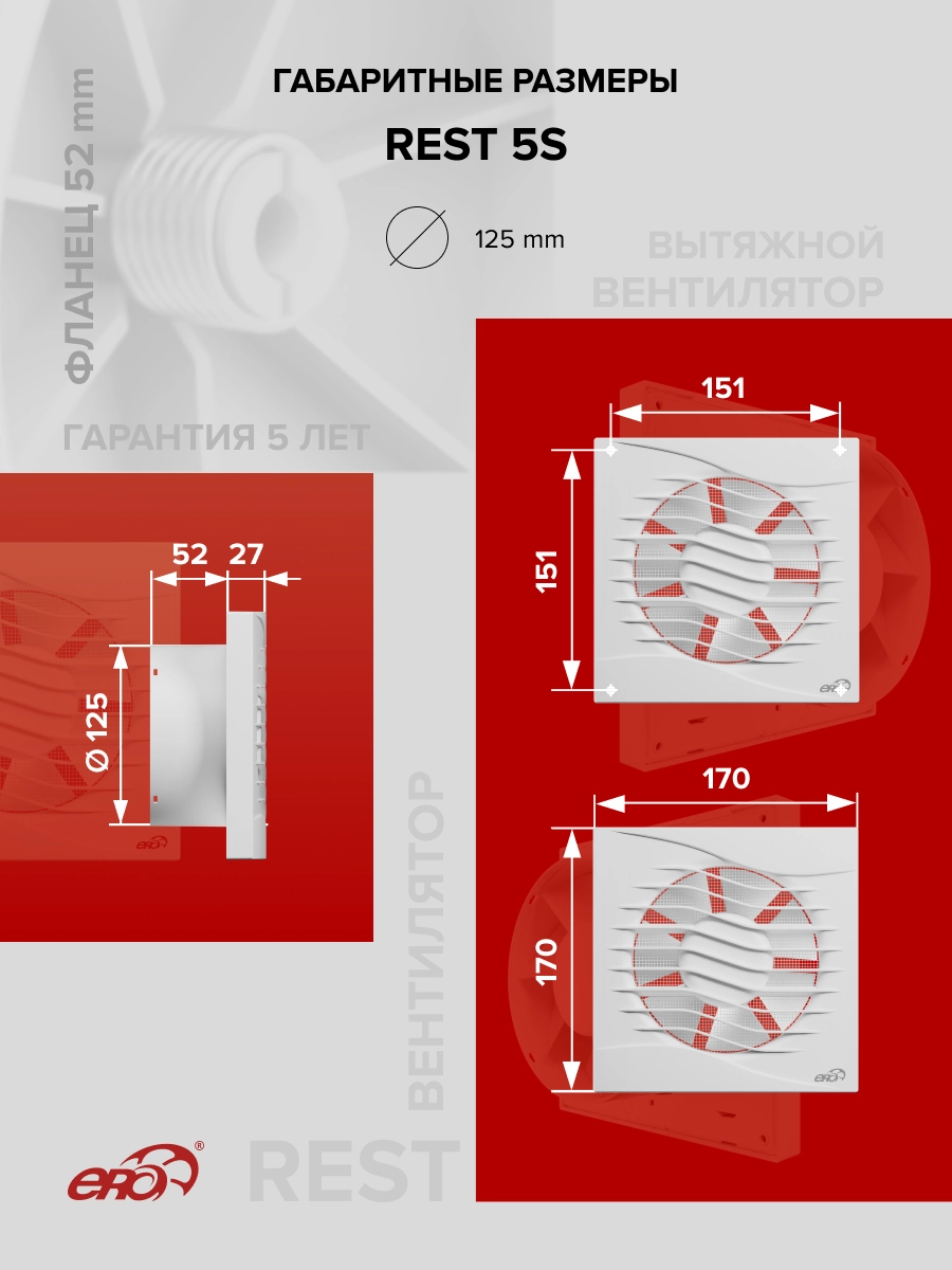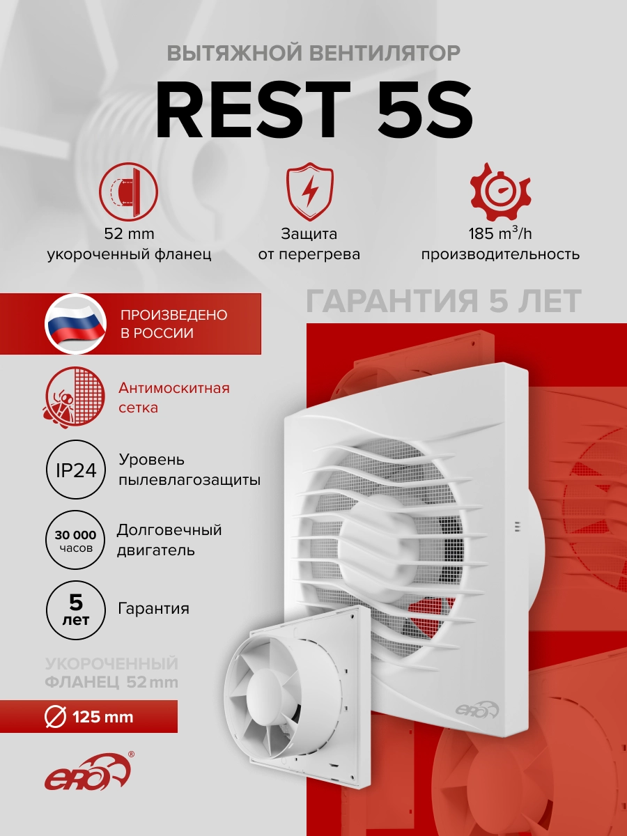 Благодаря высокой производительности (125 м³/ч) REST эффективно вытягивает из помещения влажный воздух и удаляет неприятные запахи.