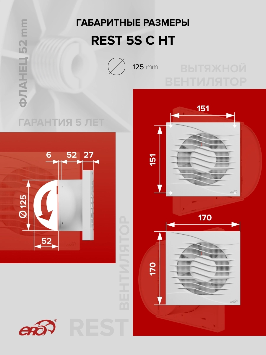 Благодаря высокой производительности (125 м³/ч) REST эффективно вытягивает из помещения влажный воздух и удаляет неприятные запахи.