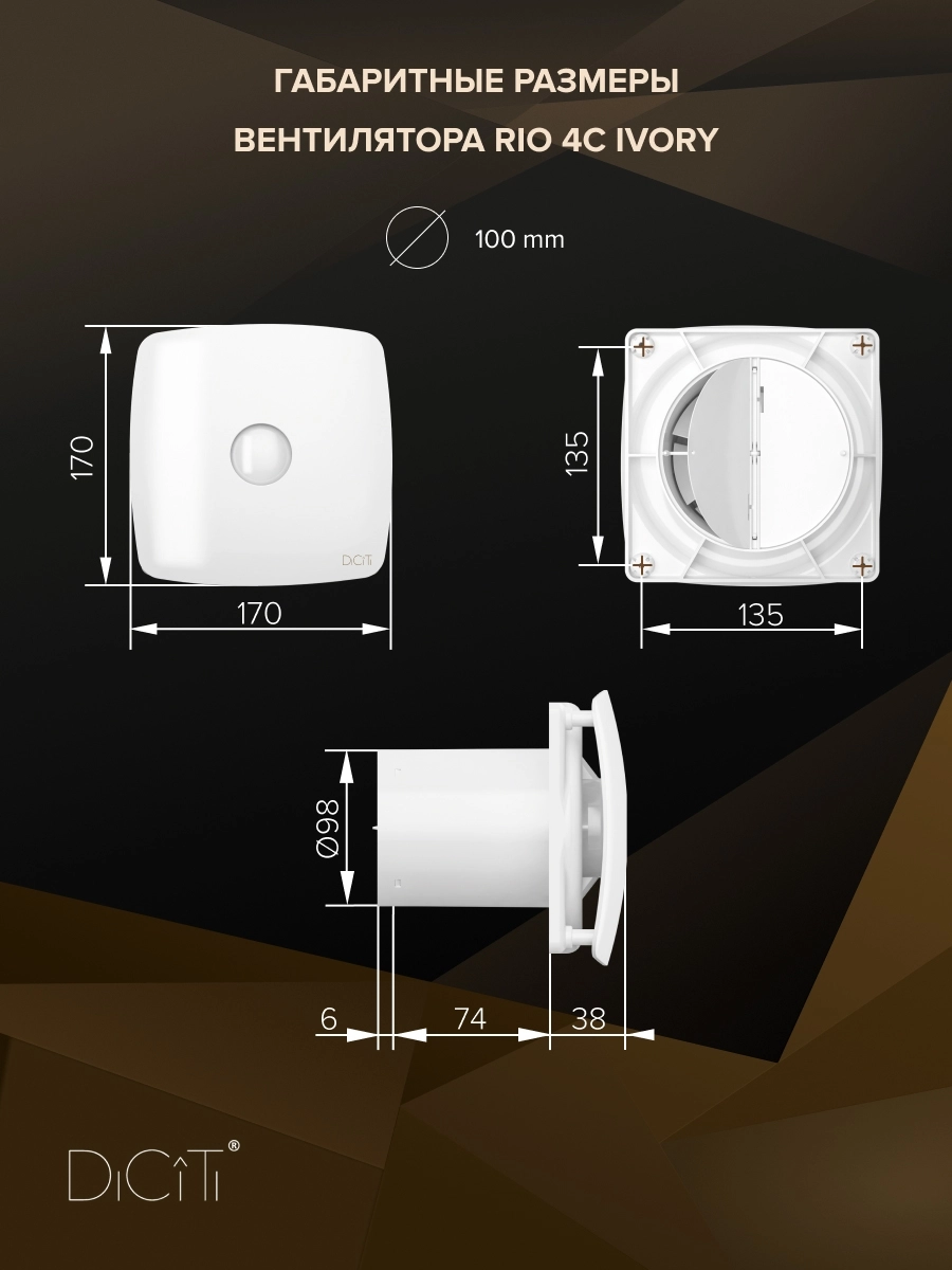 - монтажный шаблон в комплекте для простой и удобной установки вентилятора,