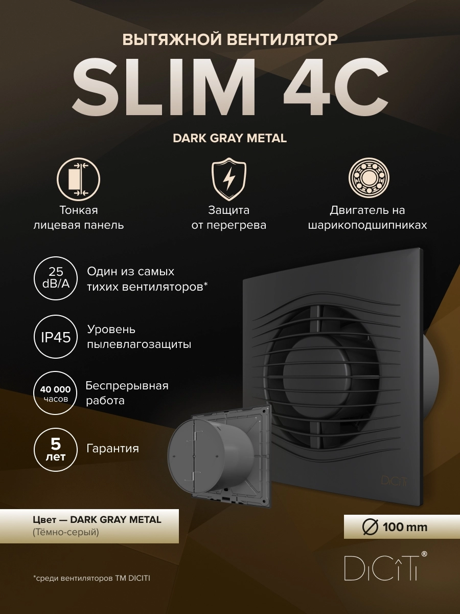 Долговечный двигатель на шарикоподшипниках не требует дополнительного обслуживания и гарантирует до 40 000 часов непрерывной работы, предохранитель Termo fuse отключит вентилятор при нагреве обмотки свыше +130 °C. SLIM можно установить как в стену, так и в потолок.