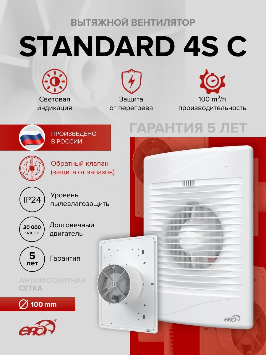 В ассортименте вентиляторы с фланцем диаметром 100 и 125 мм. Монтажные размеры на всех моделях одинаковы.