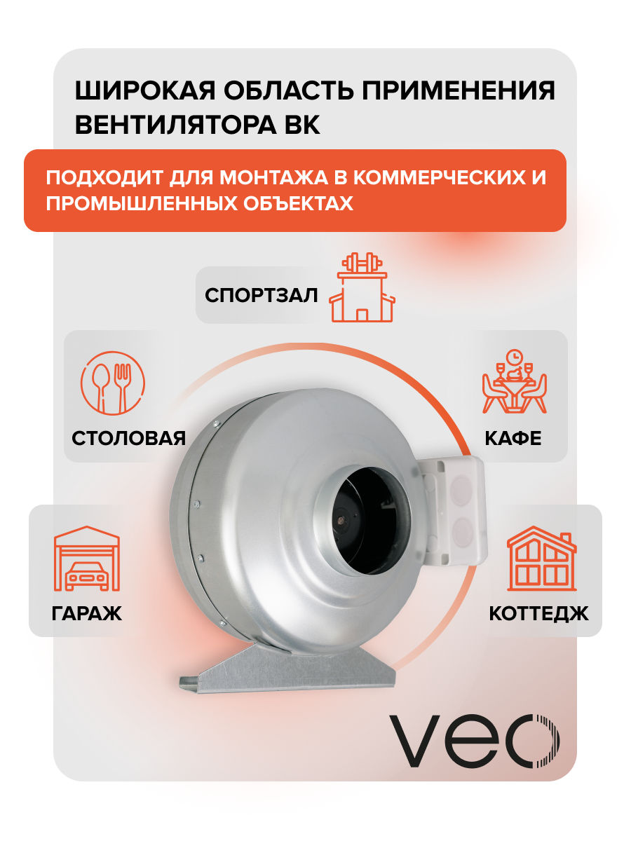 Коммерческий канальный центробежный вентилятор, выполненный в корпусе из оцинкованной стали. Предназначен для установки в любой точке приточно-вытяжной вентиляционной системы и под любым углом. В вентилятор устанавливается однофазный двигатель на шарикоподшипниках с внешним ротором, который оснащен рабочим колесом с загнутыми назад пластиковыми лопатками. Мотор имеет тепловую защиту с автоматическим перезапуском. Подключение осуществляется в герметичной клеммной коробке с откидной крышкой. В коробку с вентилятором вкладывается кронштейн для монтажа к поверхности и два винта для крепления кронштейна к корпусу.