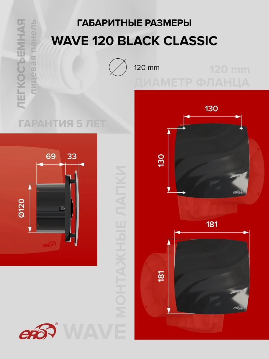 — впервые в ассортименте торговой марки ERA представлены вентиляторы с диаметром фланца 120 мм.
