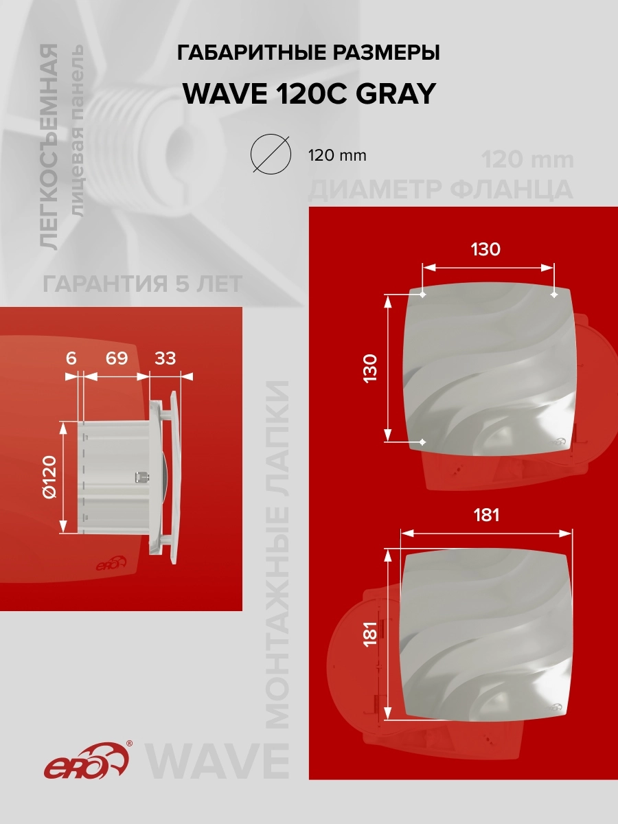 — впервые в ассортименте торговой марки ERA представлены вентиляторы с диаметром фланца 120 мм.