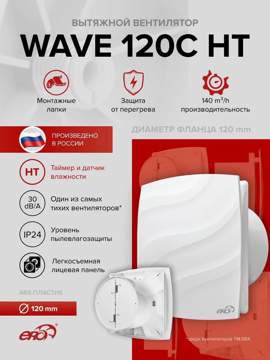 — впервые в ассортименте торговой марки ERA представлены вентиляторы с диаметром фланца 120 мм.