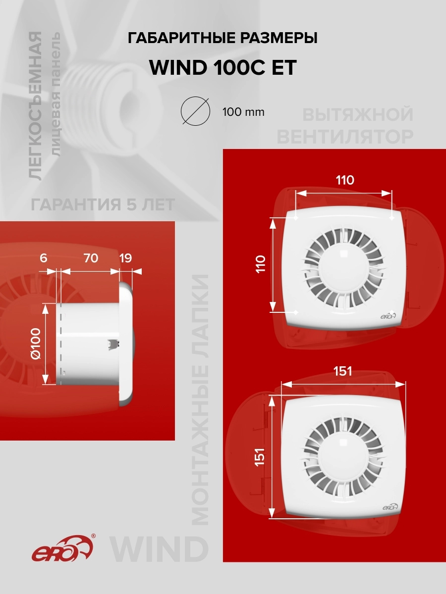 WIND имеет монтажные лапки, которые обеспечивают легкую и быструю установку вентилятора в шахту, стену и потолок. Лапки прочно удерживают устройство, упрощая монтаж. Вентилятор оснащен легкосъемной панелью, что облегчает его установку и очистку.